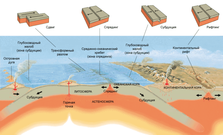 Землетрясения возникают на участках, где тектонические плиты погружаются глубоко в недра