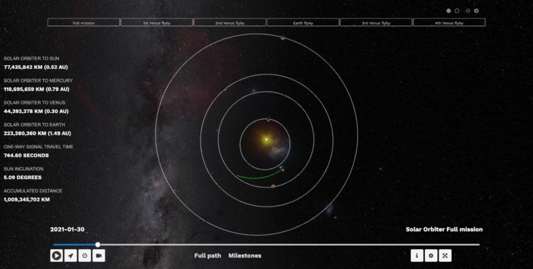 Местоположение зонда Solar Orbiter на момент написания статьи, 30 января 2021 года.