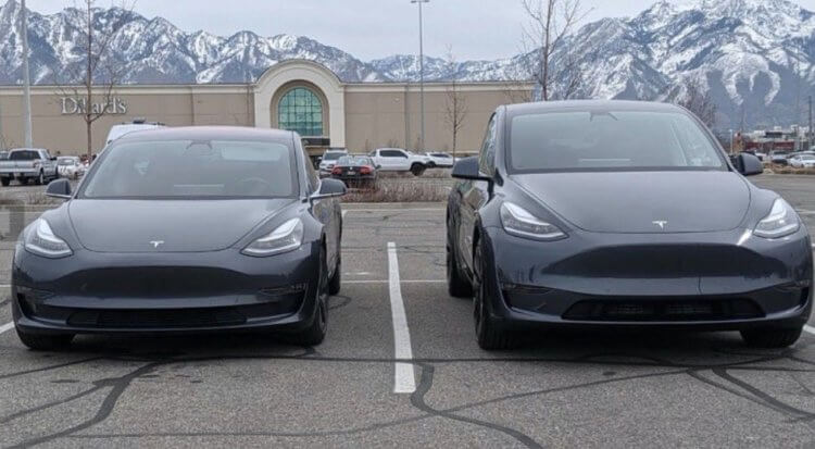 Автомобили Tesla Model 3 (слева) и Tesla Model Y (справа)