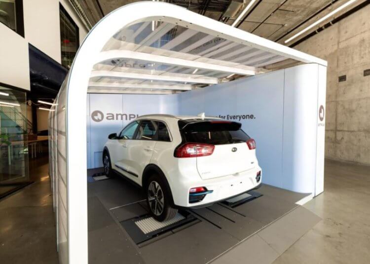 Об услуге по быстрой замене севшего аккумулятора на заряженный написано прямо в официальном сайте компании Ample. План заключается в том, чтобы установить на парковки небольшие станции, куда могут заехать электромобили. После остановки, под автомобиль заедет специальный манипулятор, который открутит болты, извлечет севший аккумулятор и установит вместо него заряженный. Такую же услугу в свое время предлагали и другие компании, но созданные ими технологии были совместимы только с определенными моделями электромобилей. Компания Ample предлагает универсальный вариант.
